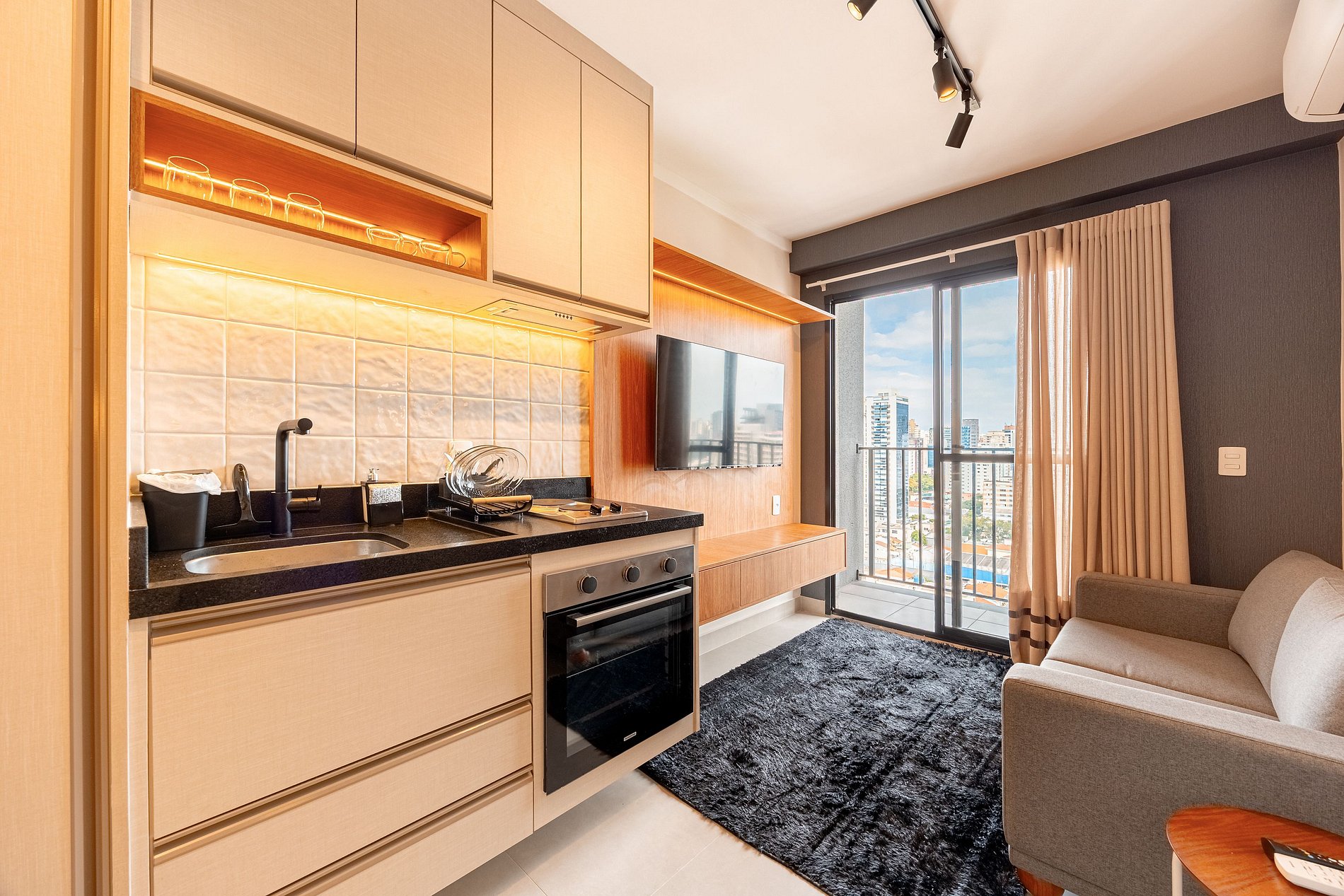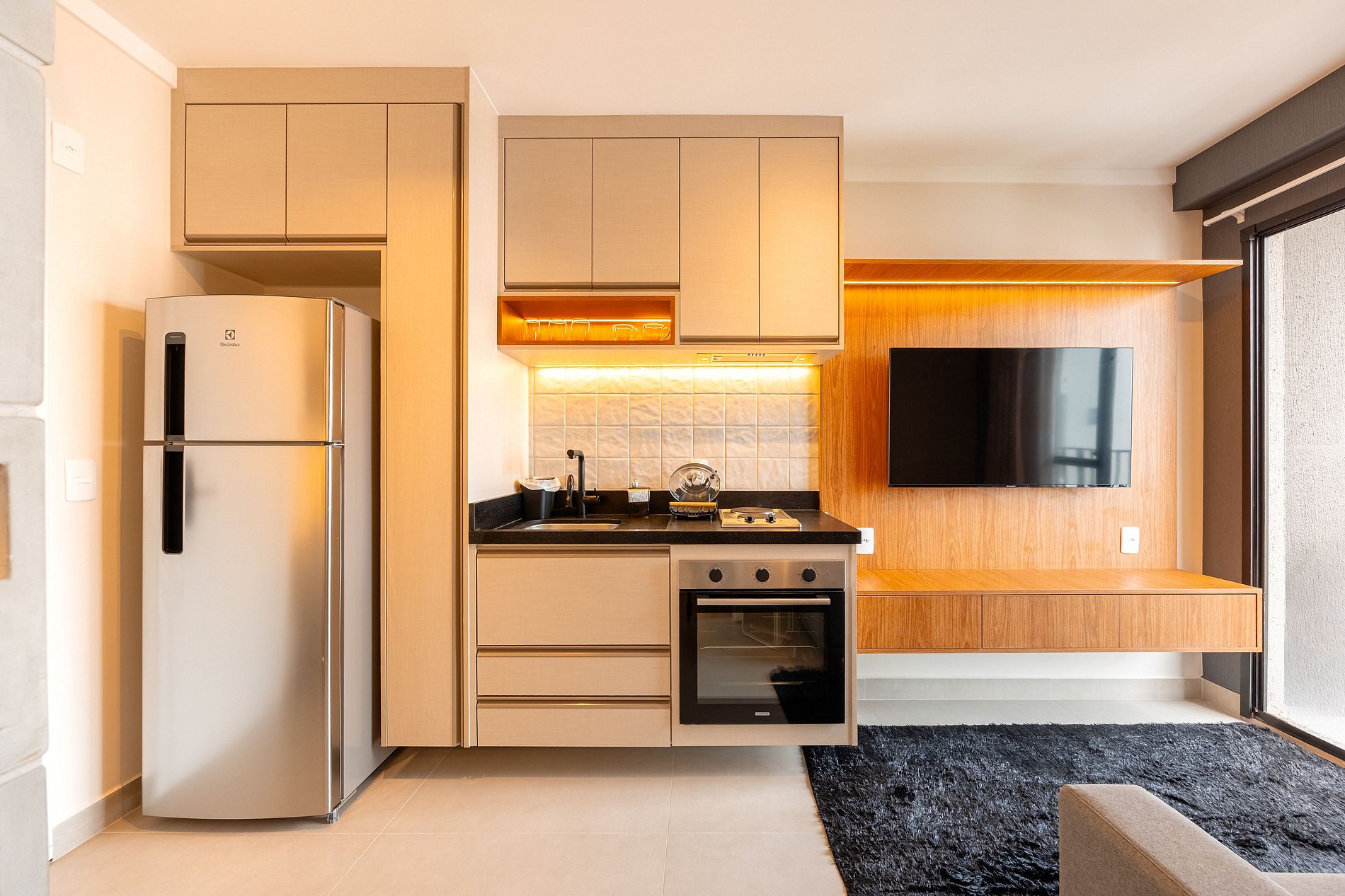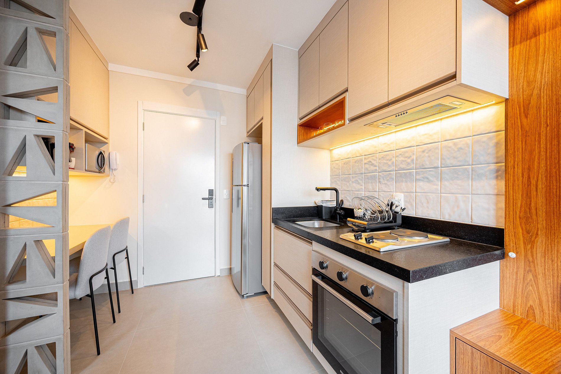 • Cozinha compacta equipada com utensílios essenciais