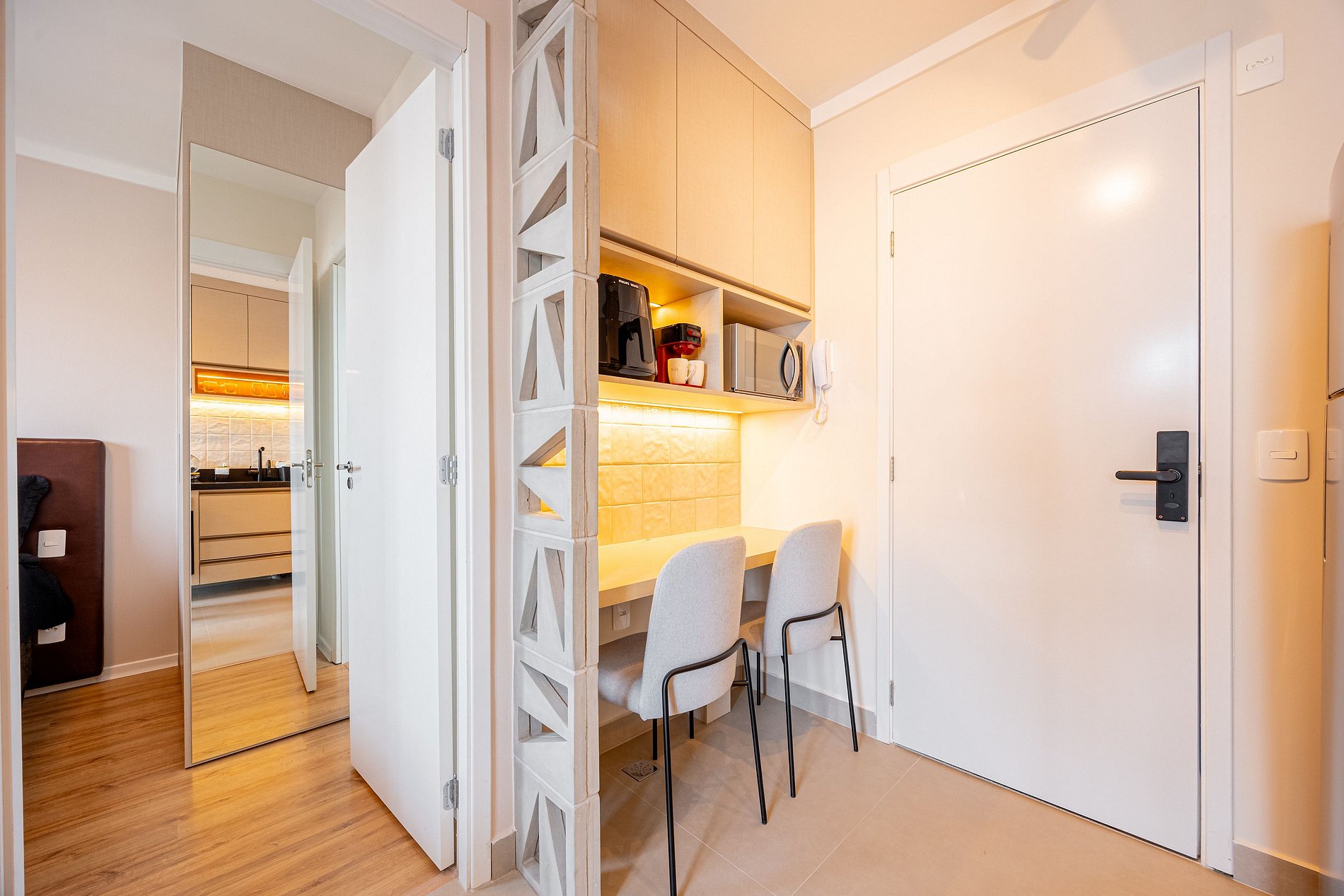 • Check-in sem contato — acesso por fechadura eletrônica