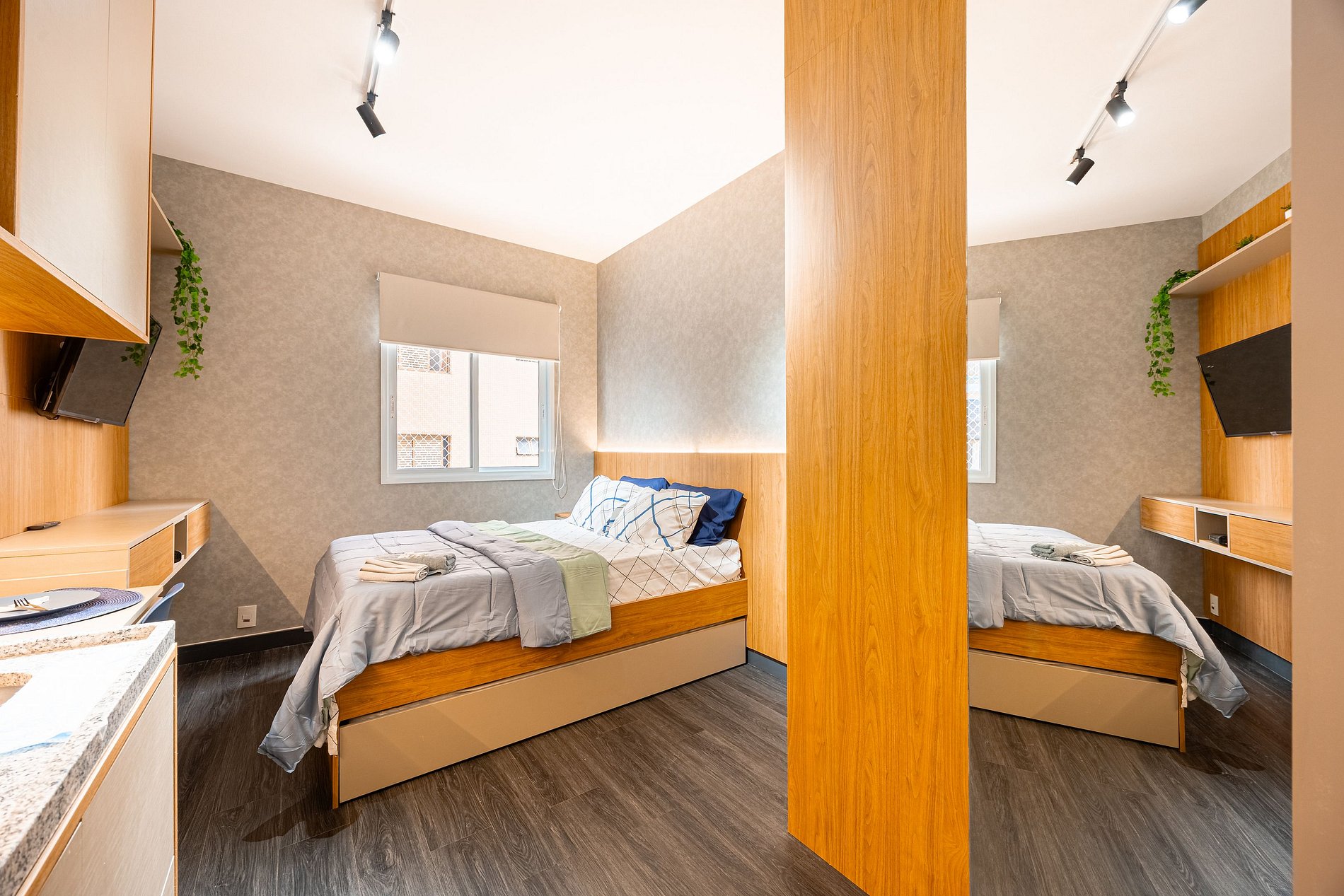 Estúdio confortável para até 3 ocupantes, ideal para quem busca praticidade, aconchego e ótima localização. O espaço foi pensado para oferecer uma estadia funcional e agradável, com ambientes bem distribuídos, mobiliados e preparados para proporcionar conforto tanto em viagens de lazer quanto de trabalho. Perfeito para casais, pequenas famílias ou amigos que desejam aproveitar a cidade com comodidade, privacidade e excelente custo-benefício.