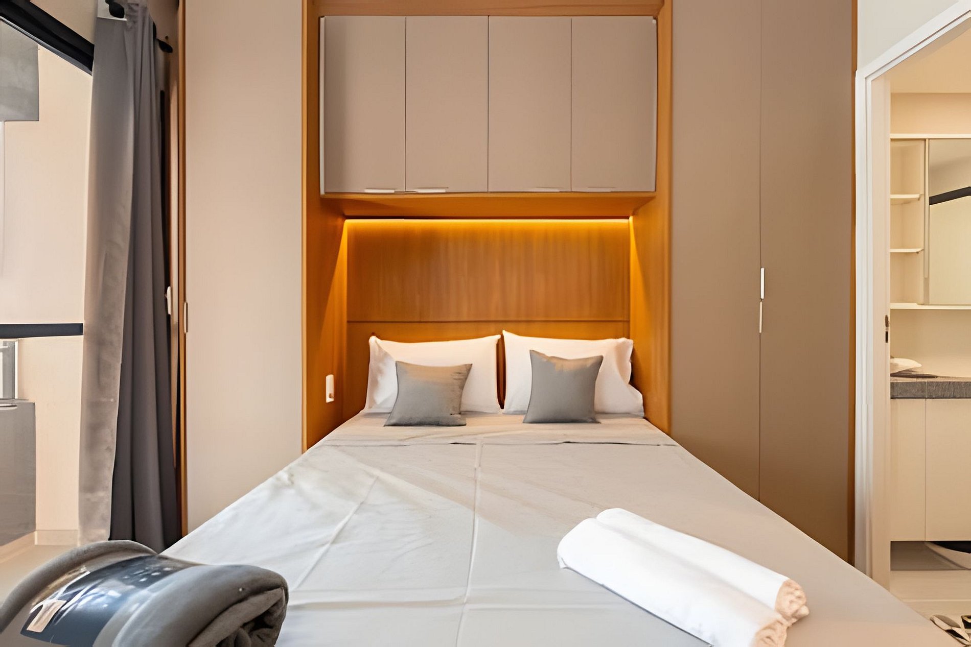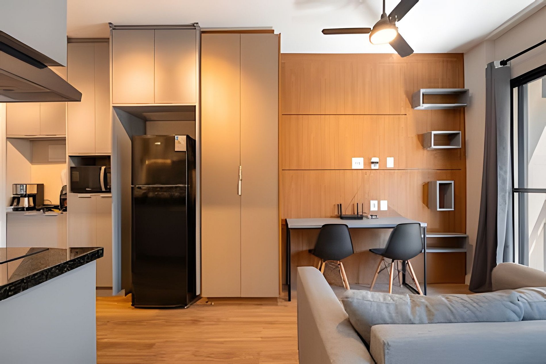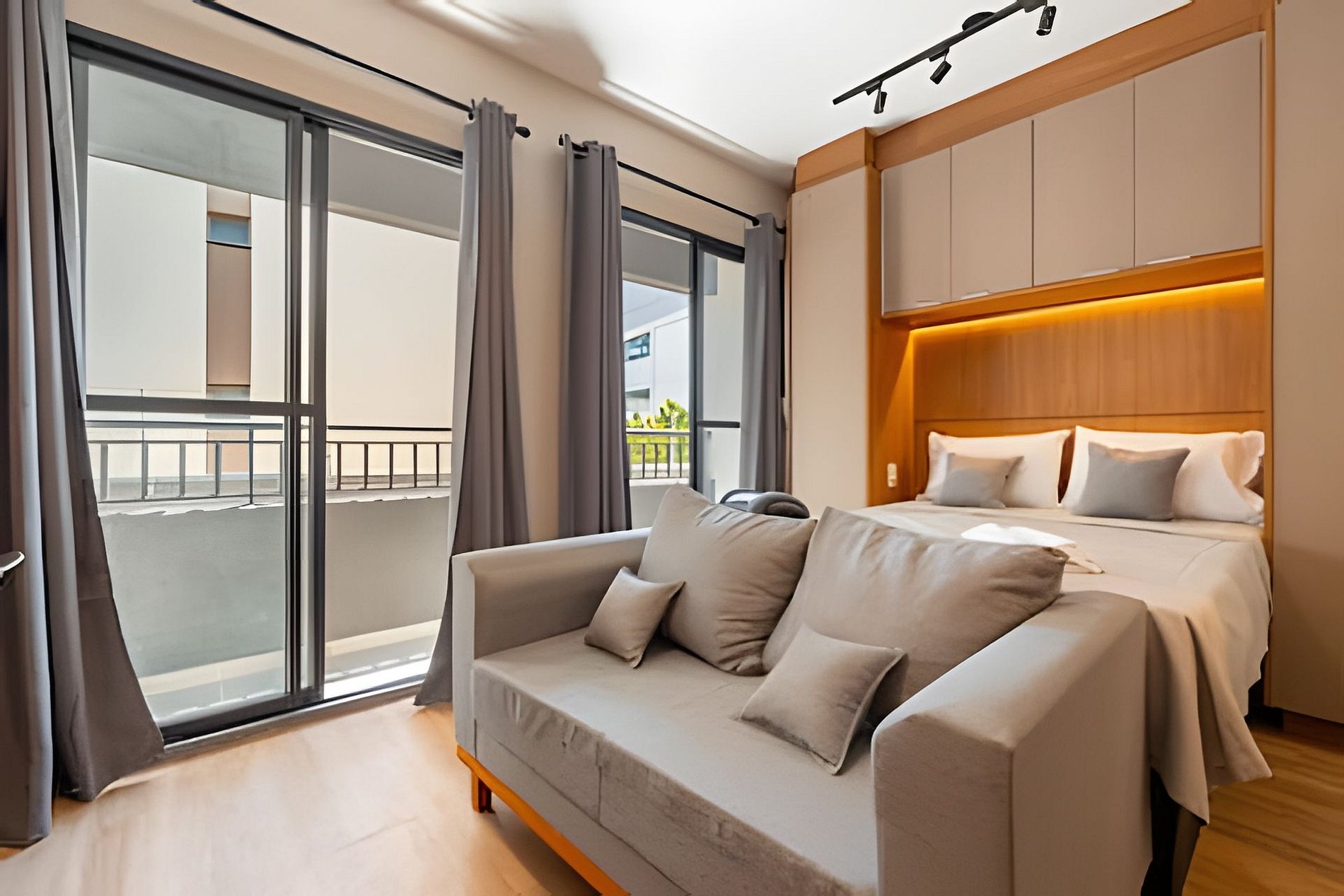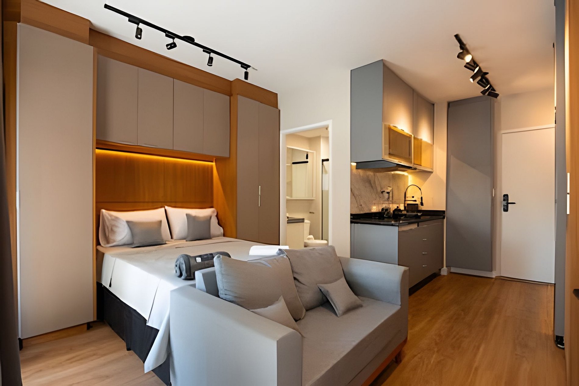 Estúdio moderno, bem distribuído e funcional, pensado para oferecer conforto e praticidade durante a estadia. O ambiente conta com boa iluminação natural, mobiliário adequado, cama confortável, cozinha funcional para o dia a dia e banheiro privativo. Ideal para quem busca comodidade, organização e uma estadia tranquila em São Paulo.