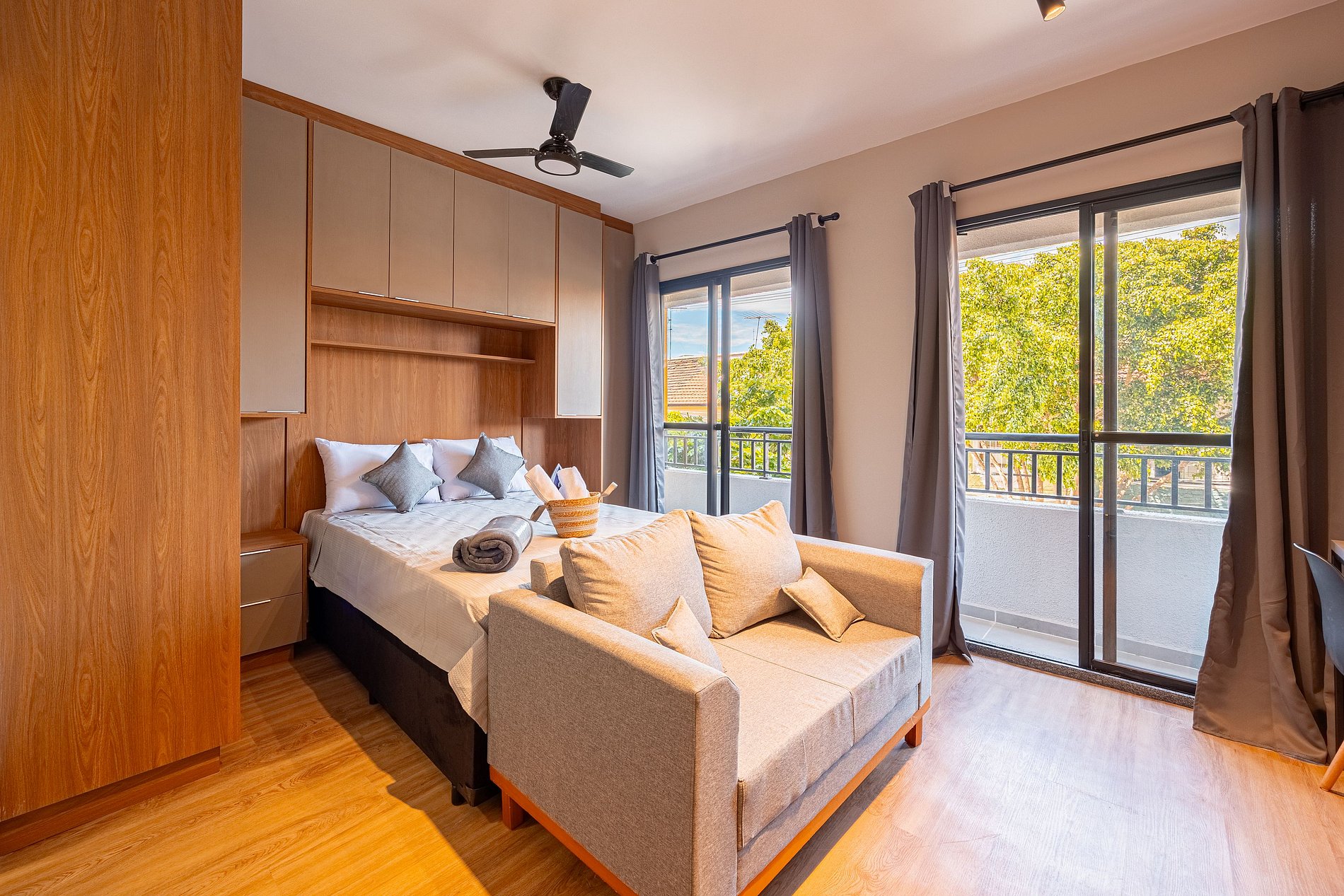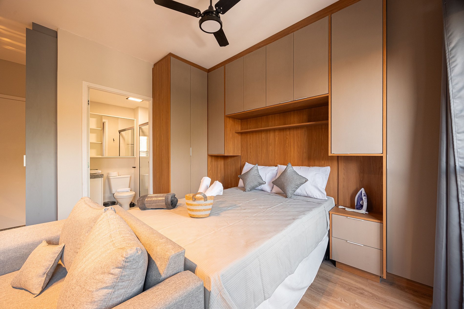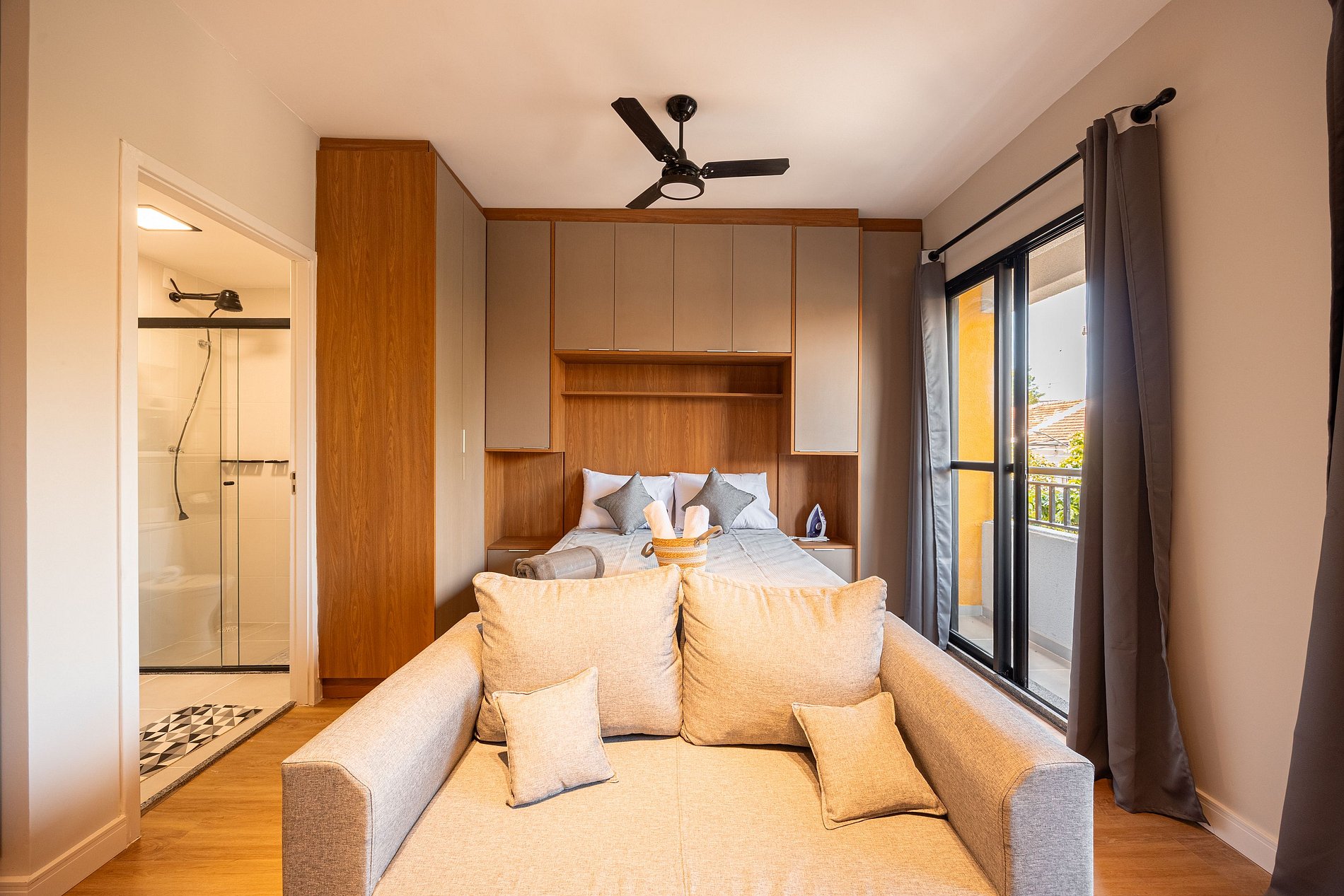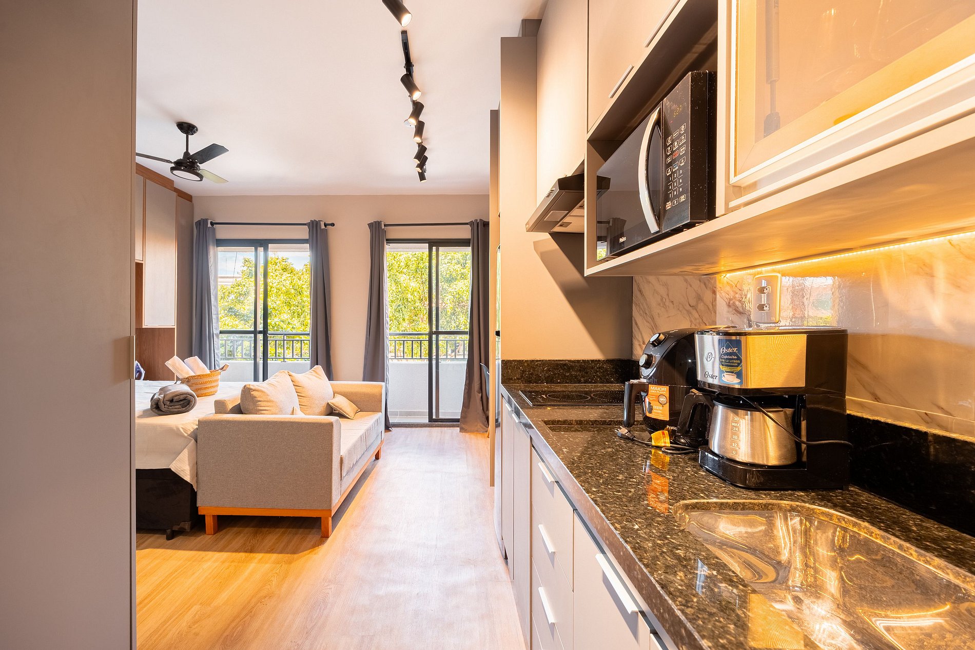 Estúdio moderno, bem distribuído e funcional, pensado para oferecer conforto e praticidade durante a estadia. O ambiente conta com boa iluminação natural, mobiliário adequado, cama confortável, cozinha funcional para o dia a dia e banheiro privativo. Ideal para quem busca comodidade, organização e uma estadia tranquila em São Paulo.