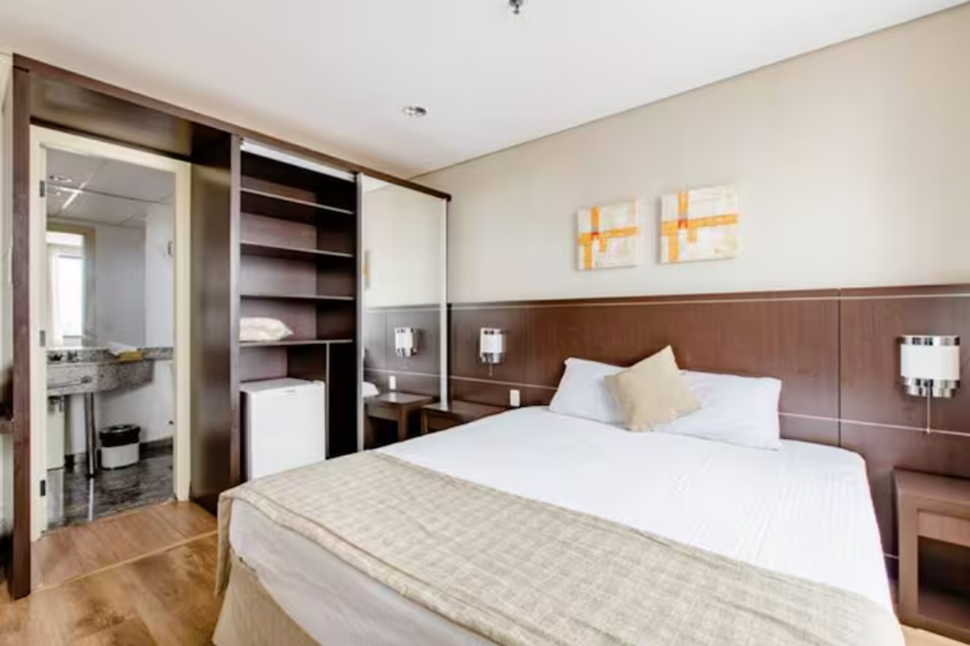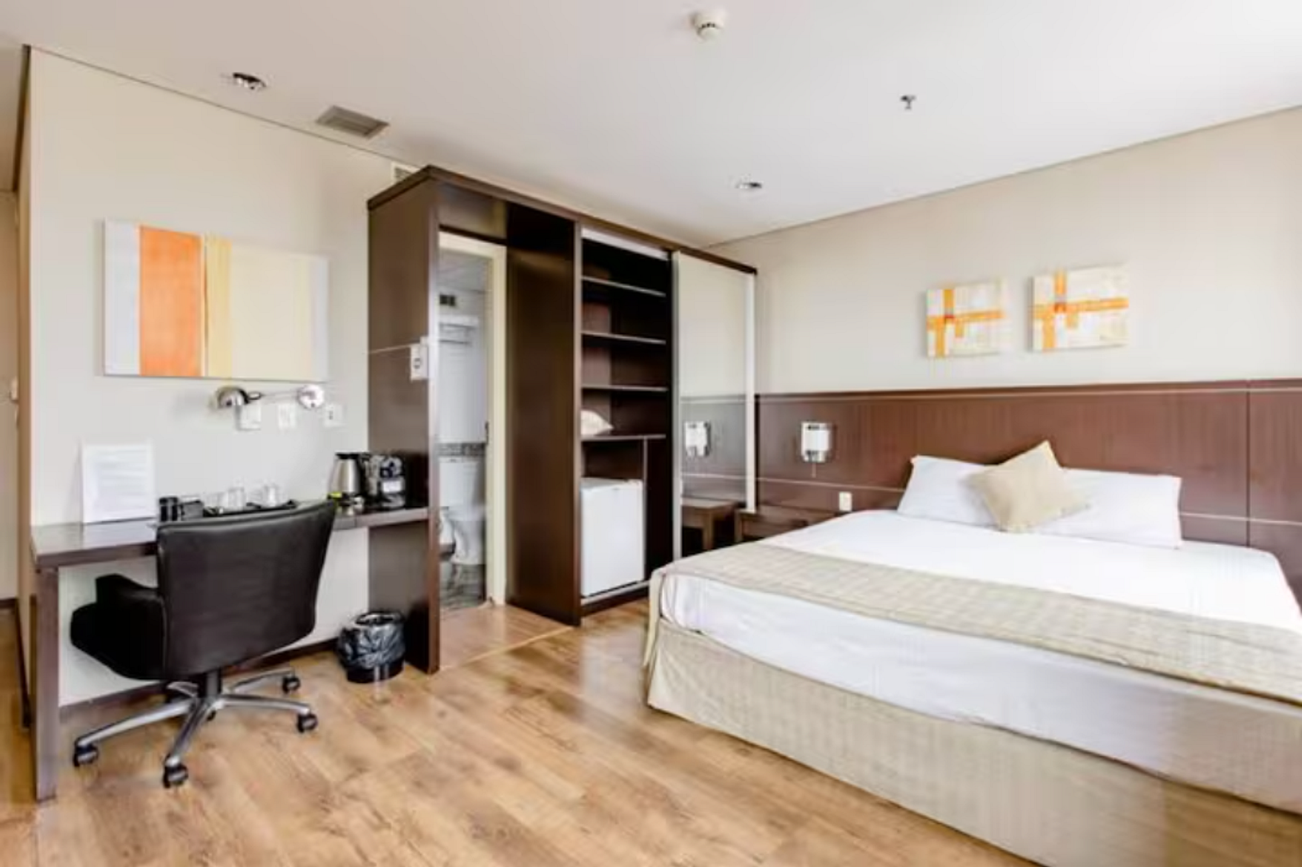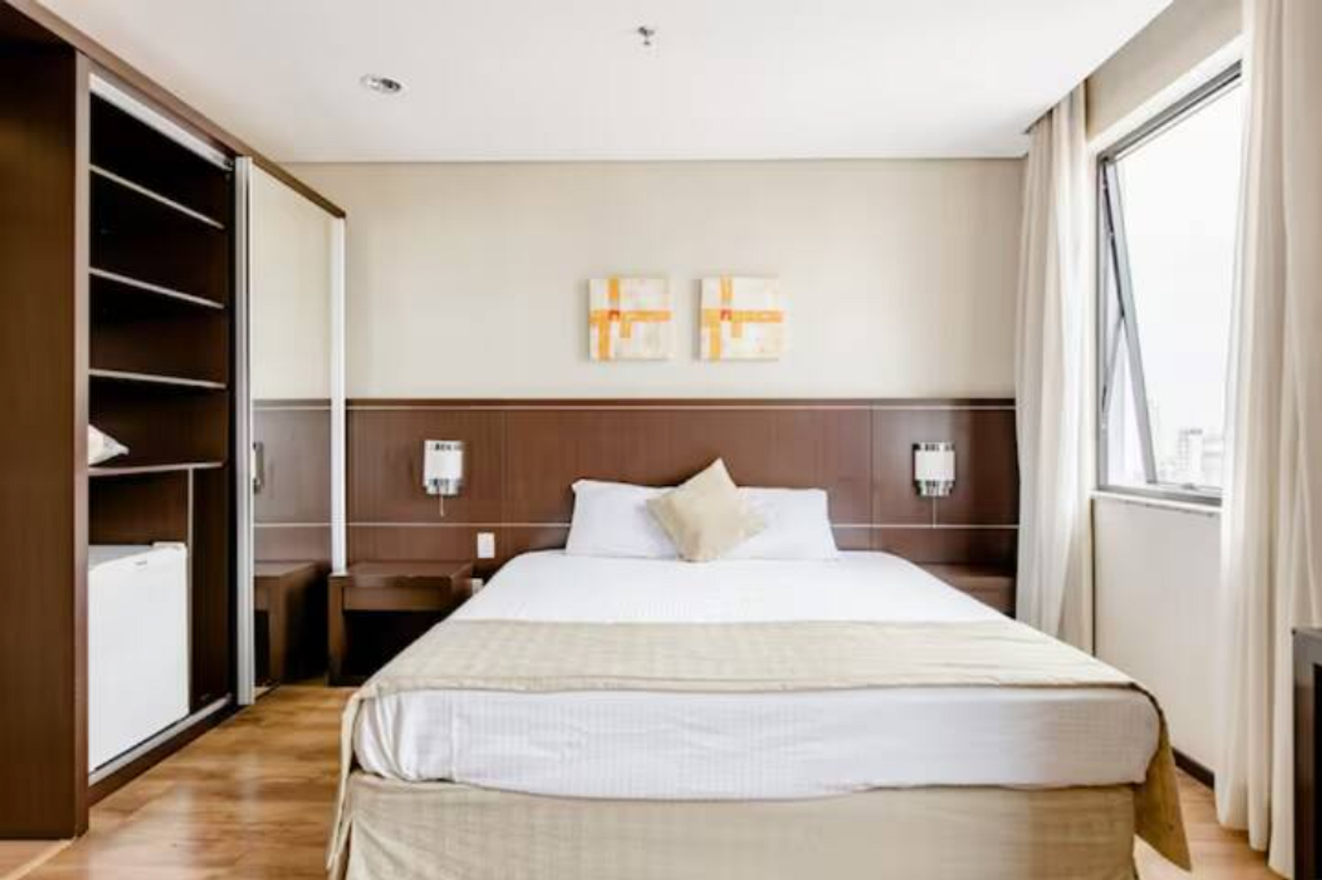 Flat do tipo suíte, possui estação de trabalho, closet, cabideiros, frigobar entre outras comodidades. O condomínio oferta ainda: restaurante, cafeteria, farmácia, mercado atravessando a rua, Lavanderia Self service no condomínio ( com custo acessível), um excelente local para trabalhar home office ou curtir um lazer.