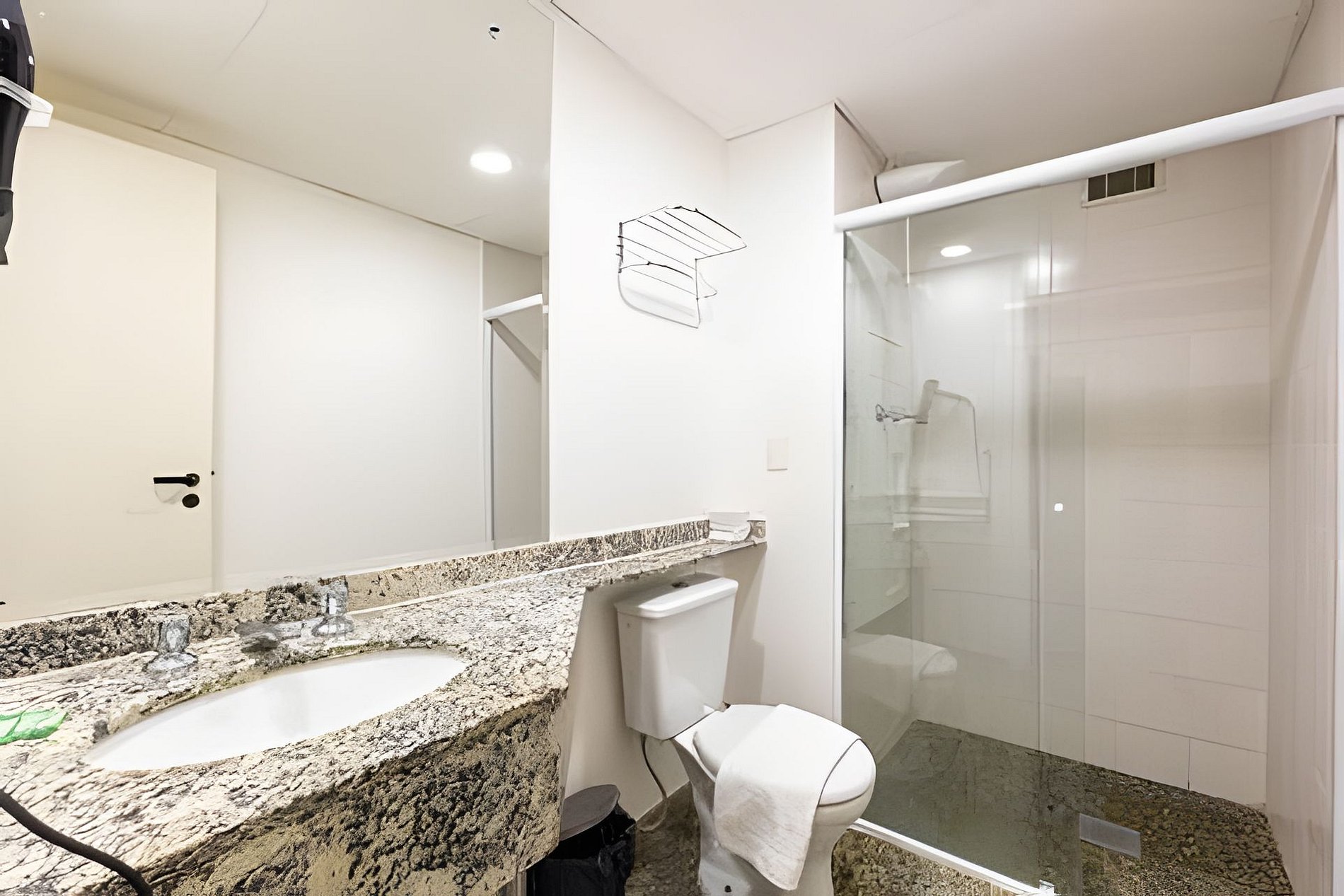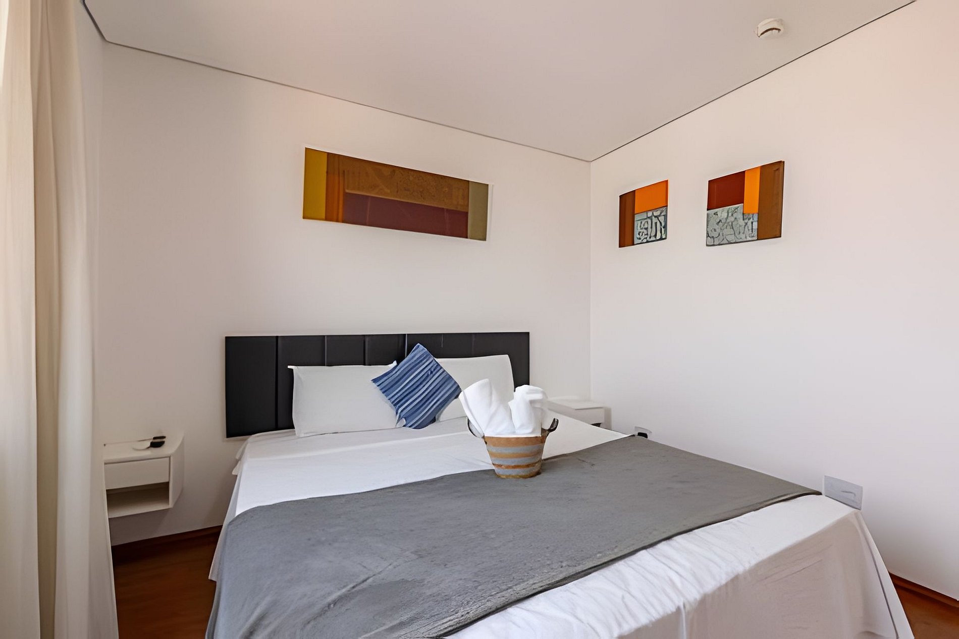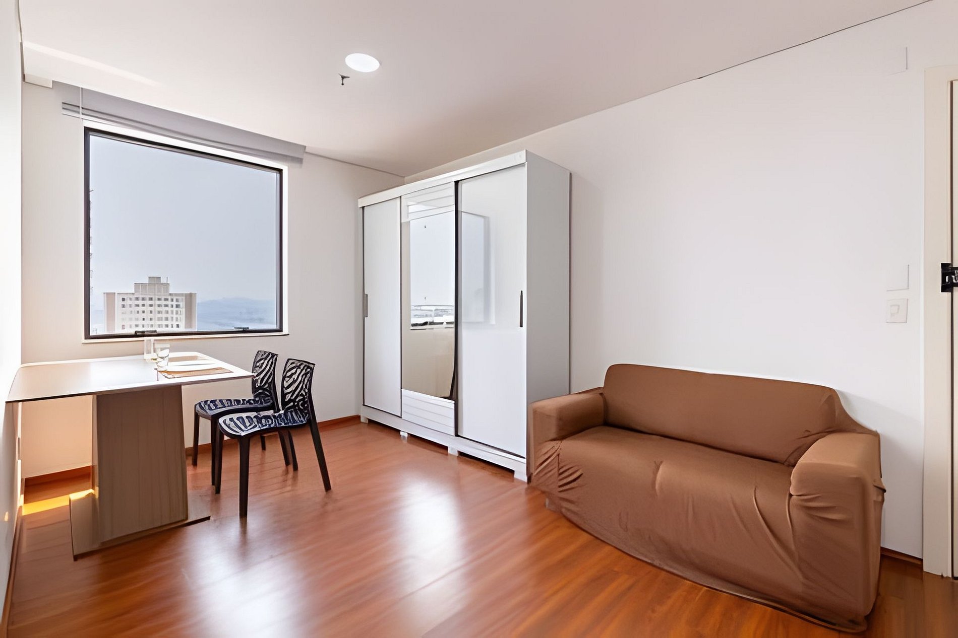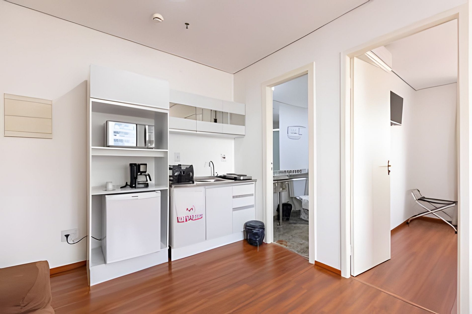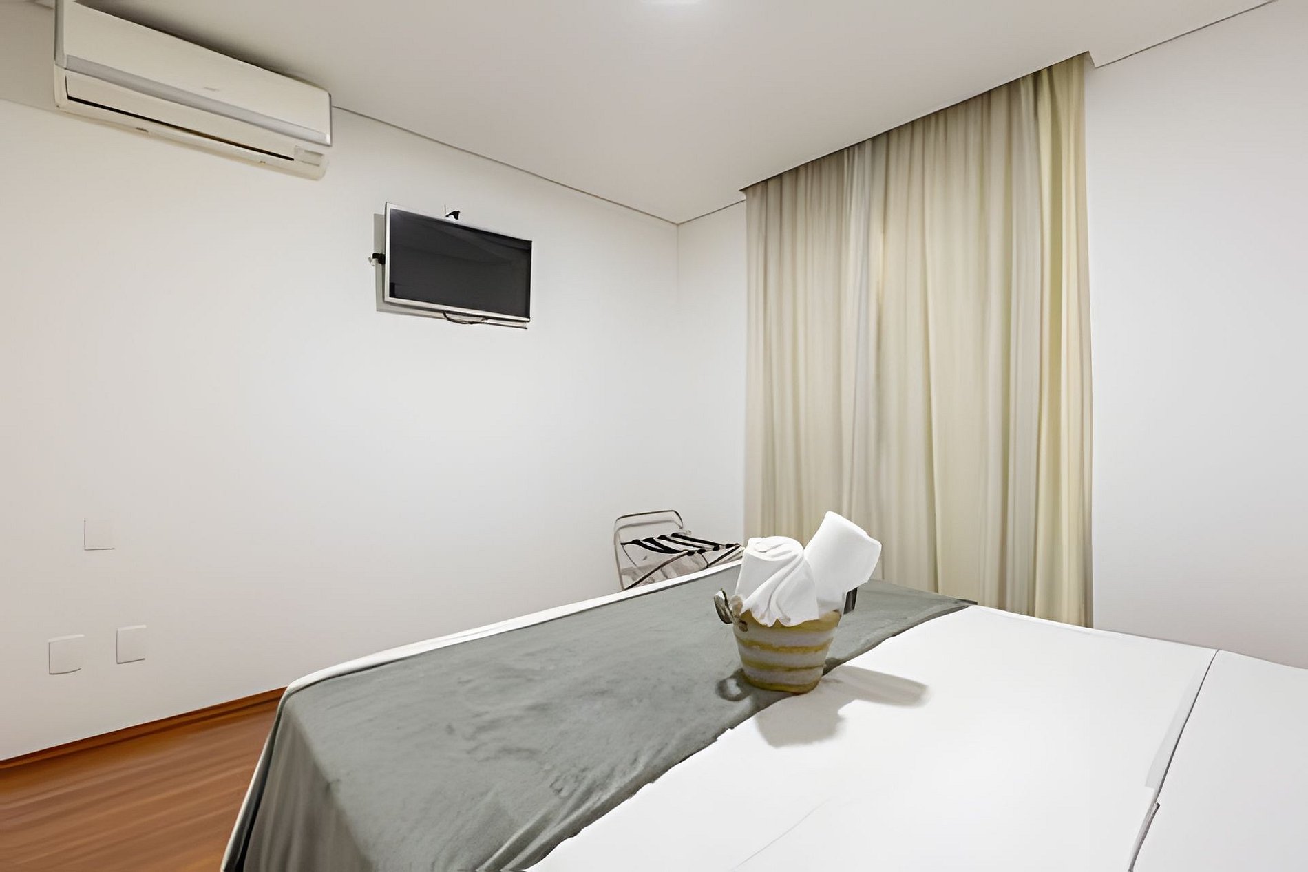 Flat do tipo suíte, possui, closet, cabideiros, cozinha, frigobar entre outras comodidades . O condomínio oferece ainda: restaurante, cafeteria, farmácia, mercado atravessando a rua, Lavanderia Self service no condomínio (com custo acessível).Um excelente local para trabalhar home office ou curtir um lazer.