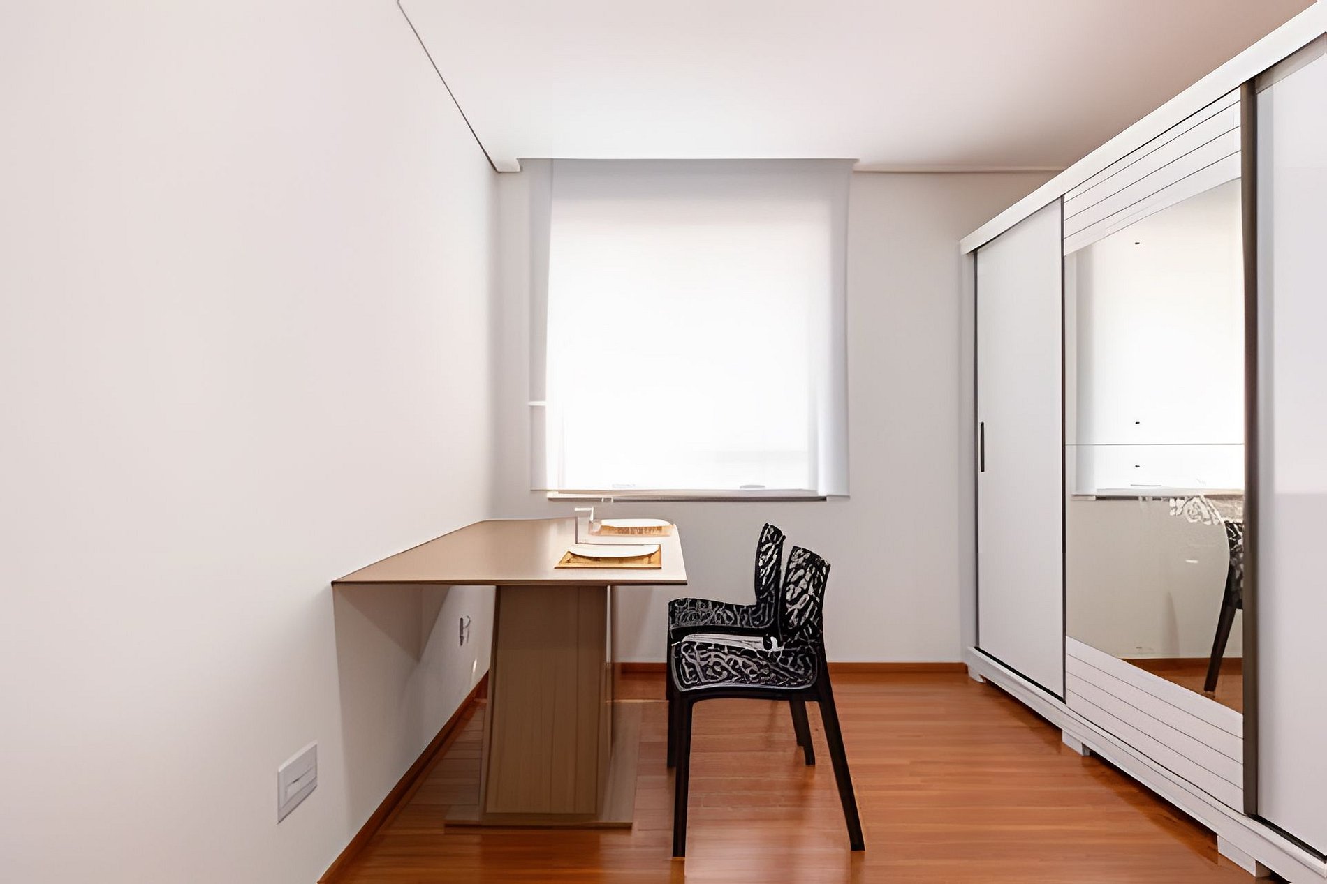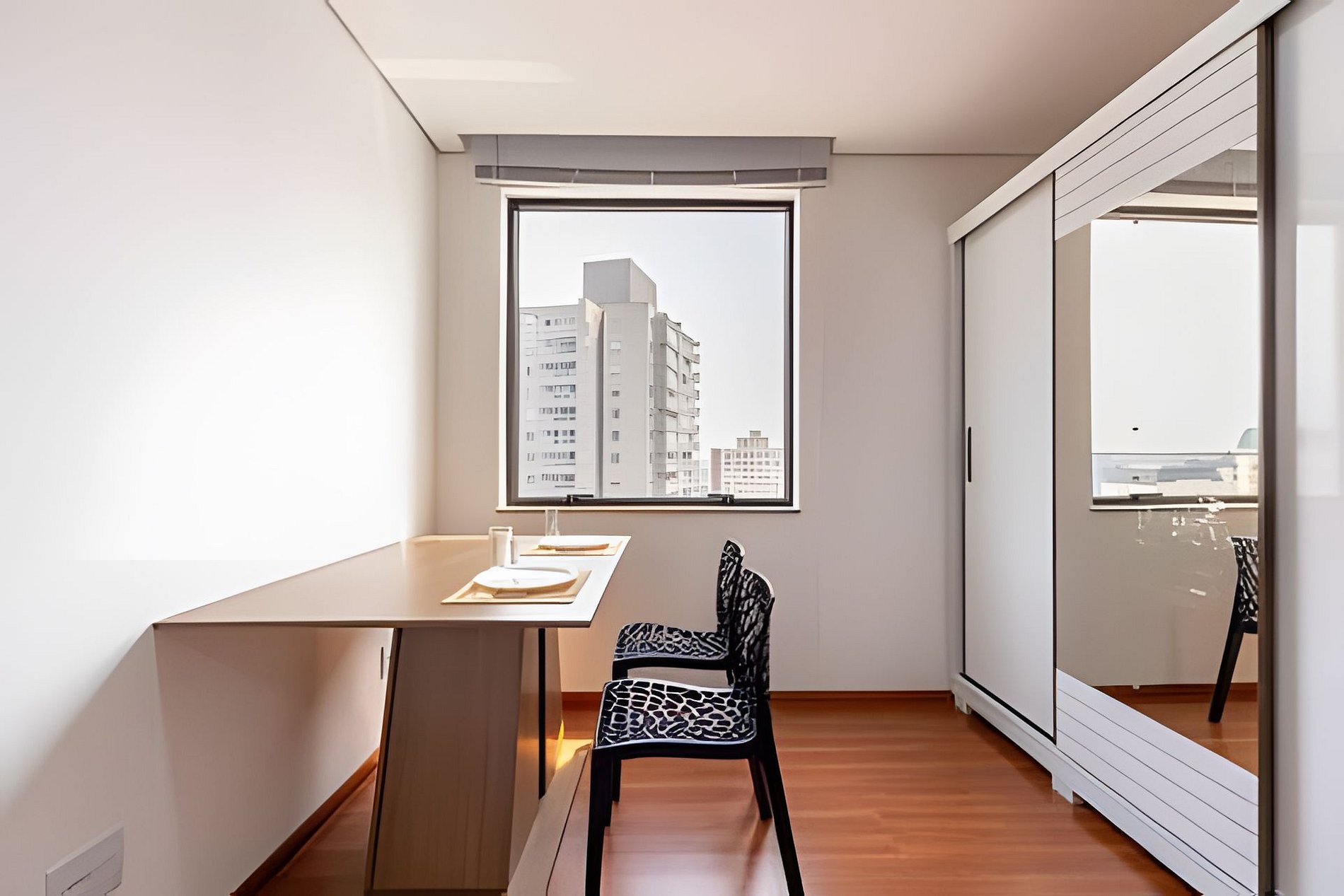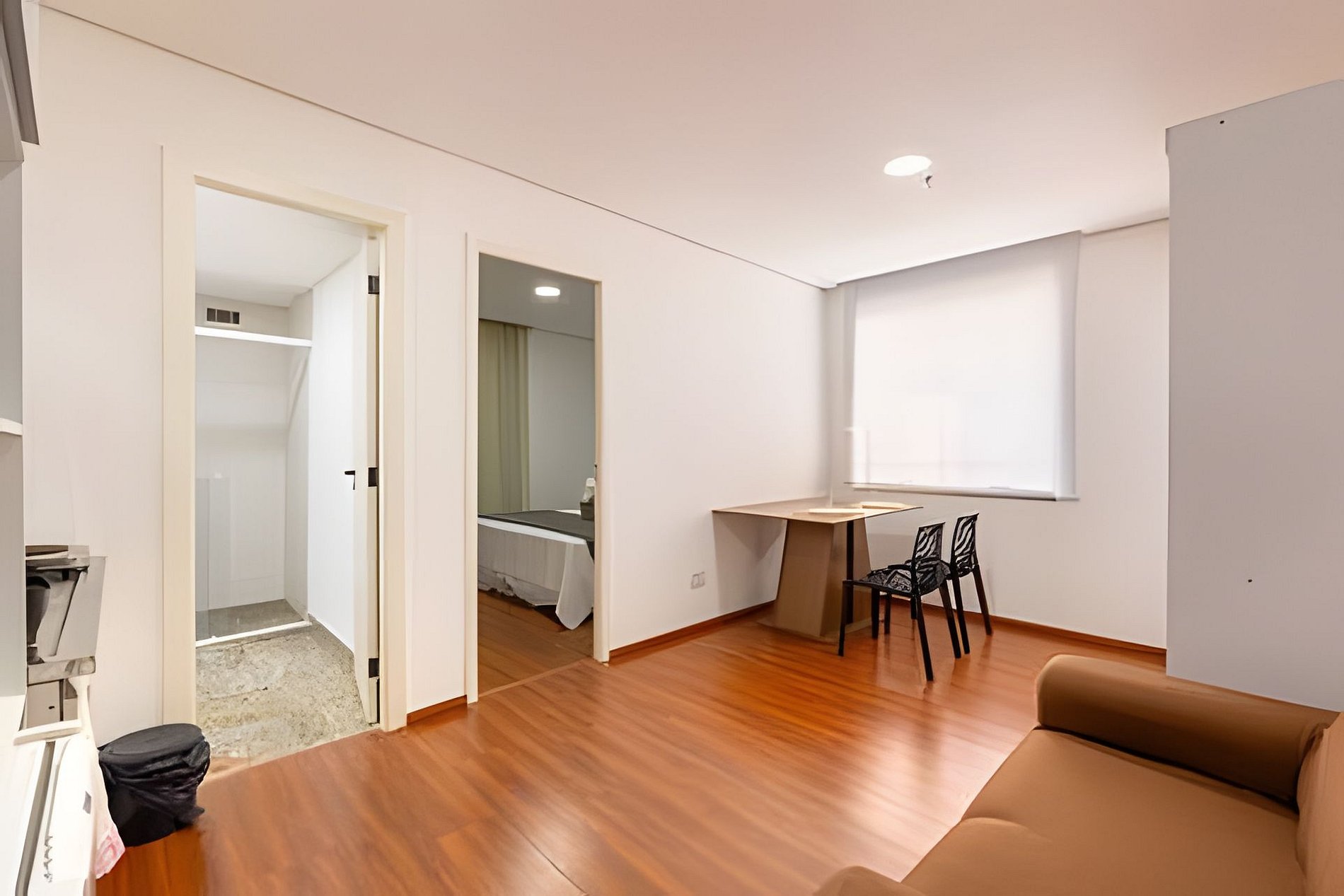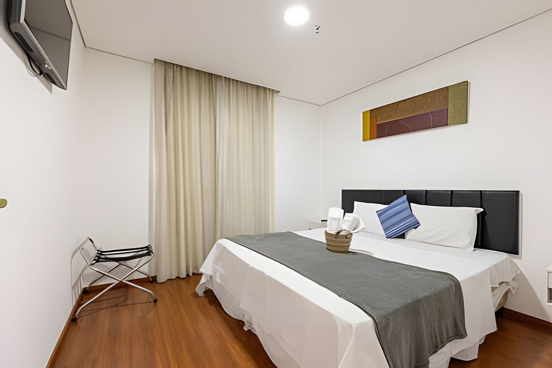 Flat do tipo suíte, possui, closet, cabideiros, cozinha, frigobar entre outras comodidades . O condomínio oferece ainda: restaurante, cafeteria, farmácia, mercado atravessando a rua, Lavanderia Self service no condomínio (com custo acessível).Um excelente local para trabalhar home office ou curtir um lazer.
