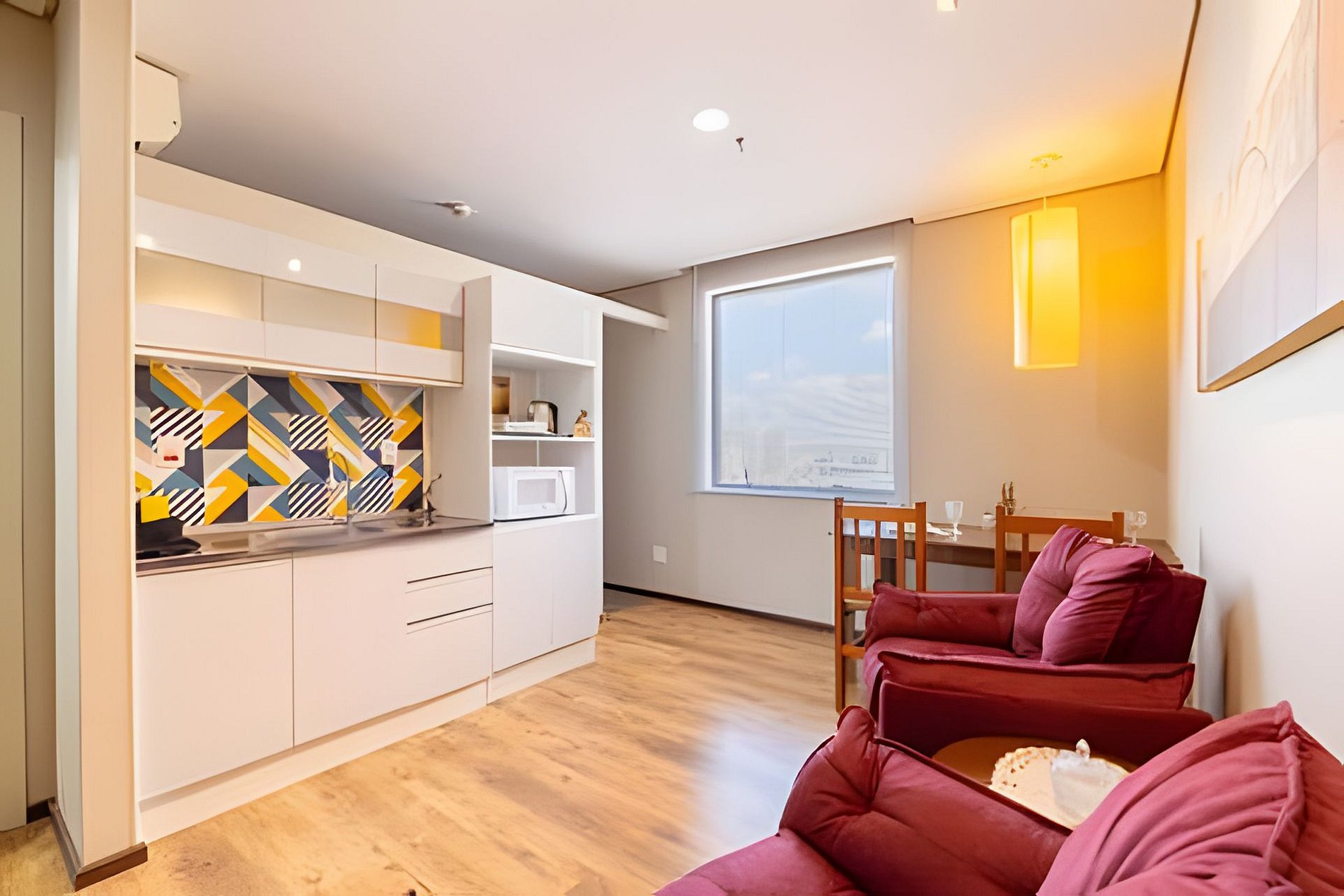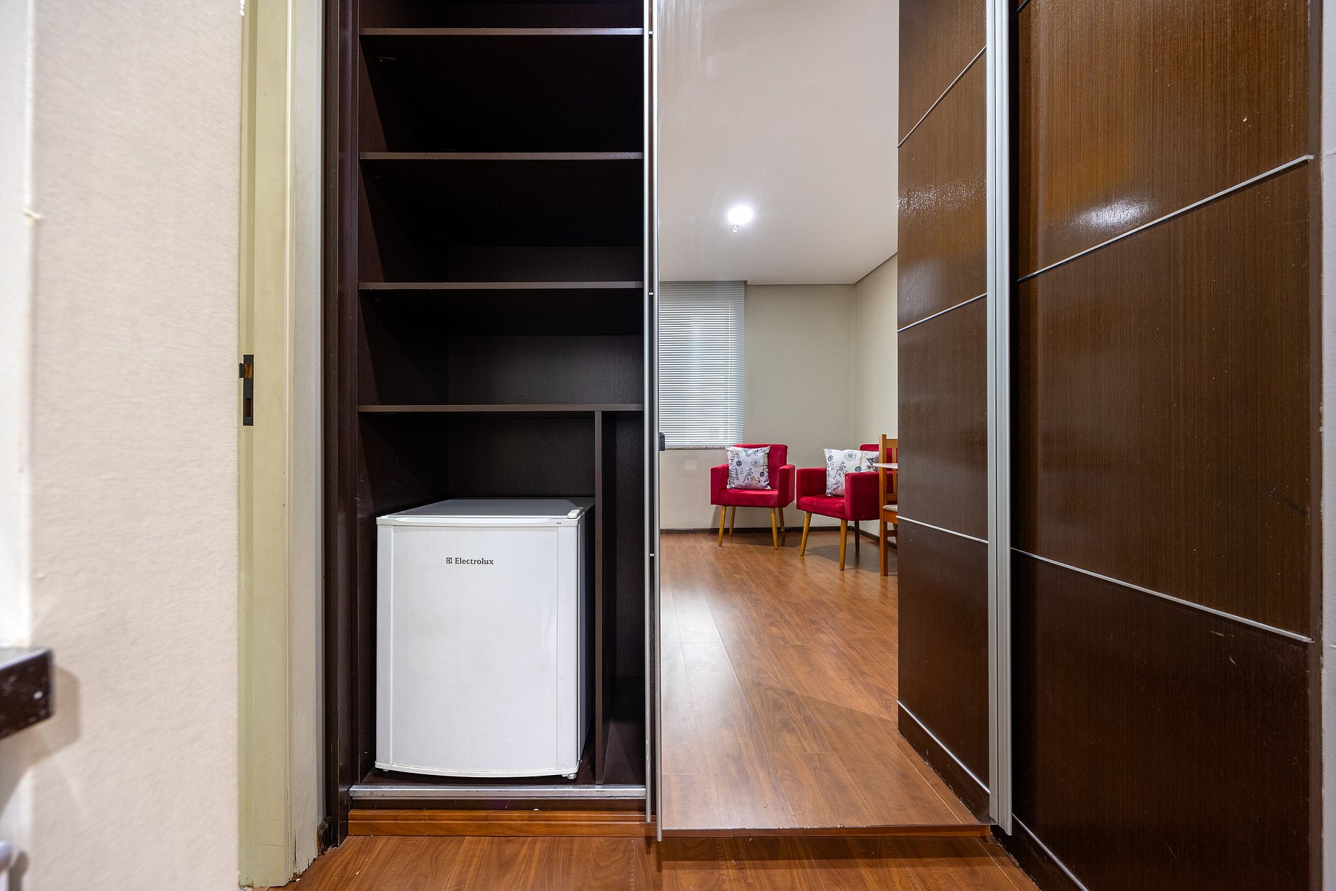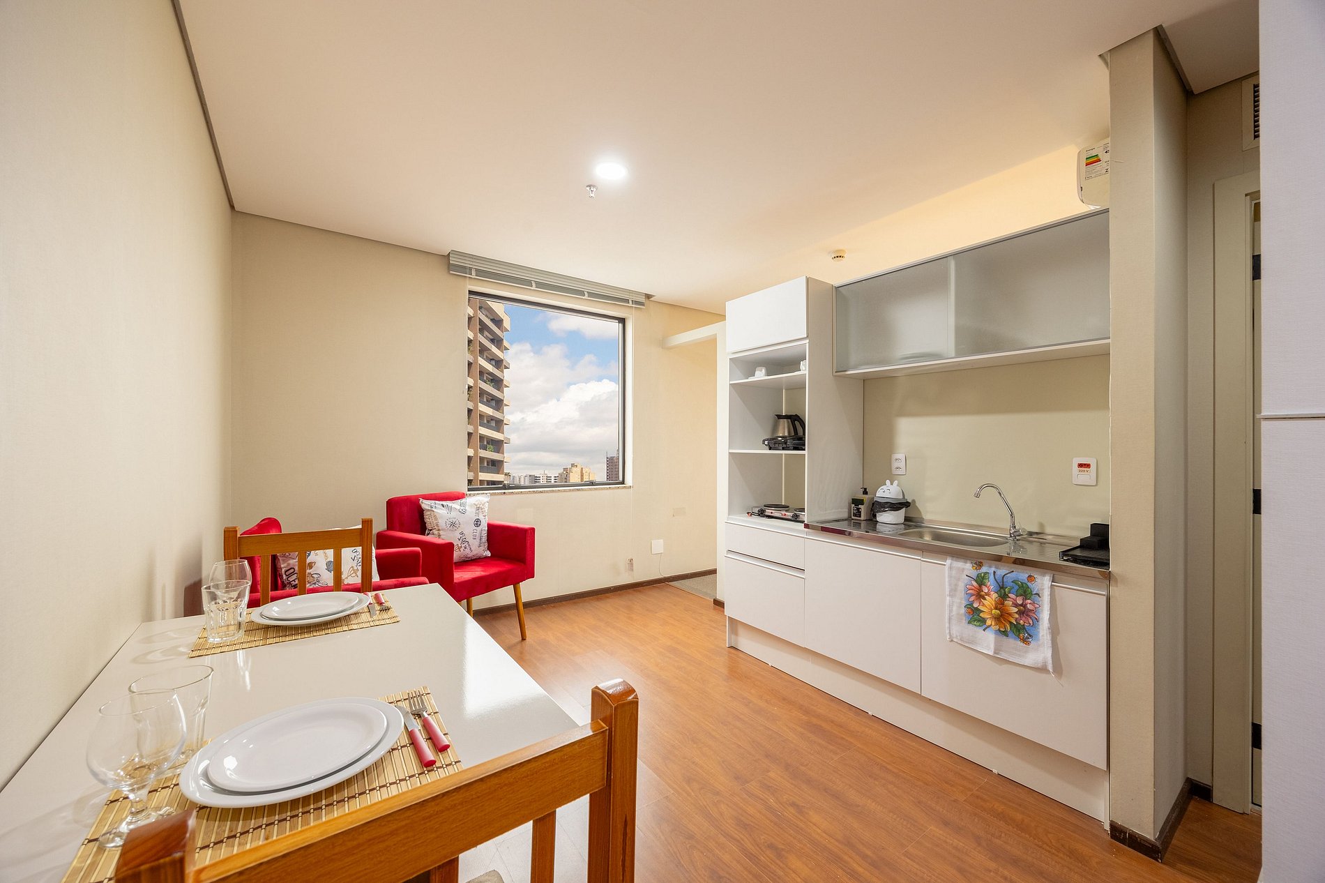 Flat do tipo suíte, ideal para quem busca praticidade e conforto. Conta com closet, cabideiros, cozinha equipada, frigobar e diversas outras comodidades pensadas para tornar sua estadia mais agradável e funcional. O condomínio oferece uma estrutura completa: restaurante, cafeteria, farmácia e um mercado logo em frente ao prédio, facilitando o dia a dia. Além disso, dispõe de lavanderia self-service no local, com custo acessível — ideal para estadias prolongadas. Seja para trabalhar em home office com tranquilidade ou aproveitar momentos de lazer com comodidade, este flat é a escolha perfeita para quem valoriza localização, conforto e autonomia.