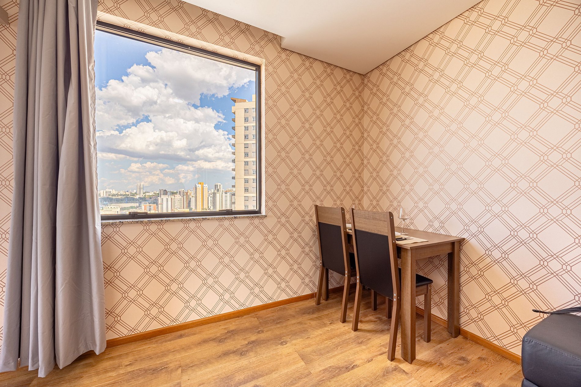 .O Flat é totalmente independente, não há compartilhamento de espaço ou internet com outras unidades, apartamento do tipo suíte com acesso a piscina e academia pelo terraço no 18º andar, com uma vista espetacular da cidade.