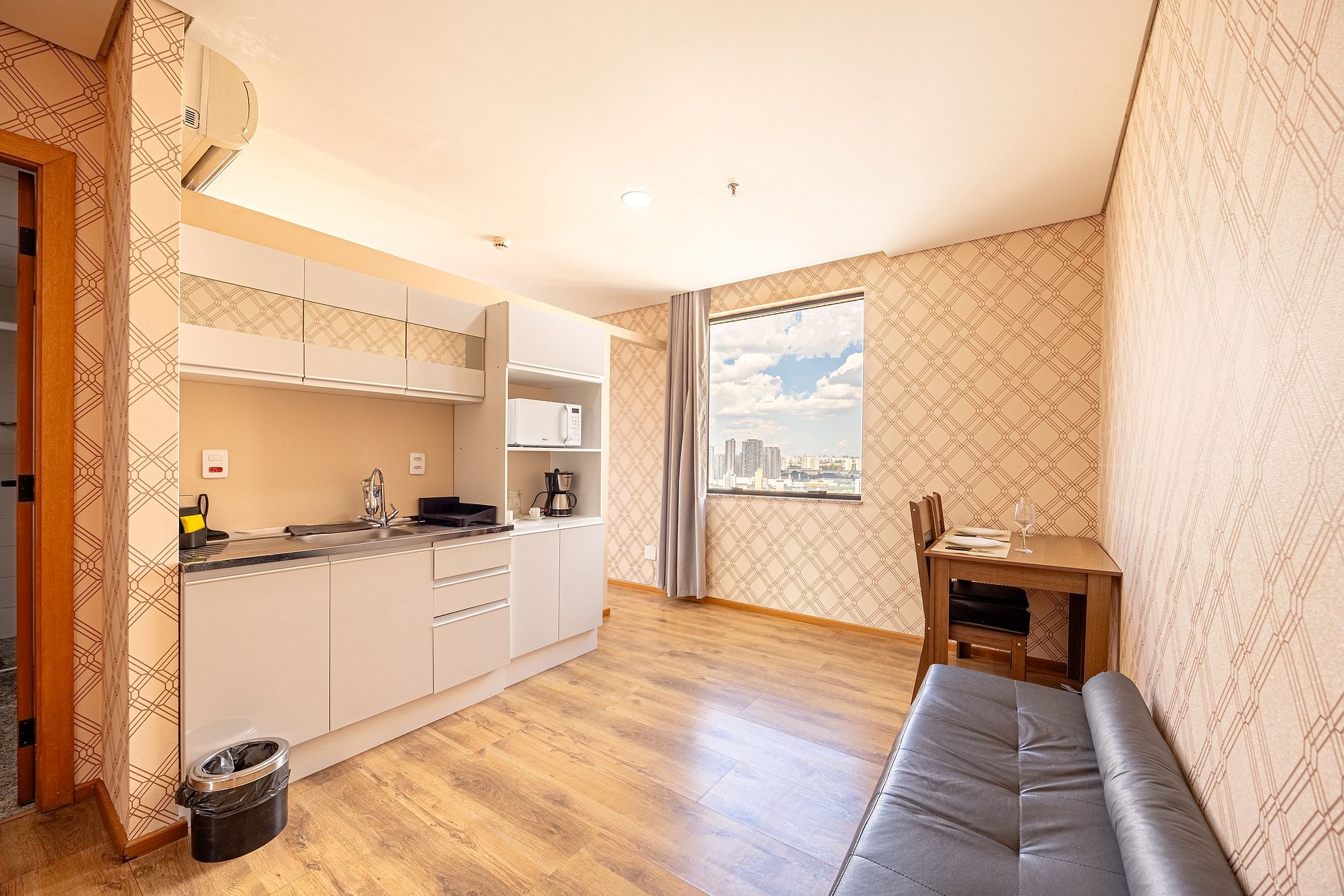 O Flat se destaca pela combinação de conforto, praticidade e independência. Com um ambiente moderno e bem distribuído, ele conta com uma copa equipada, ideal para quem deseja preparar refeições rápidas ou manter sua rotina alimentar mesmo longe de casa. O design clean e funcional proporciona uma experiência acolhedora, tanto para quem vem a trabalho quanto para quem busca descanso