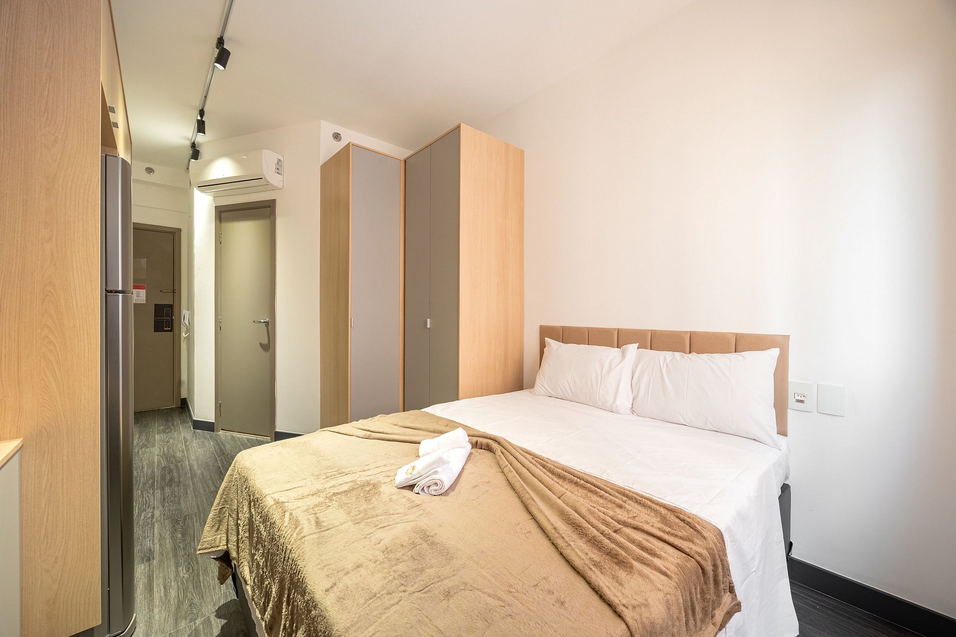Estúdio estilo suíte, cuidadosamente planejado para unir conforto e praticidade. Conta com closet espaçoso, cabideiros organizados, geladeira e uma série de comodidades que facilitam o dia a dia. Está localizado em uma região com ampla oferta de comércio, garantindo conveniência a poucos passos. O condomínio dispõe ainda de lavanderia self-service com ótimo custo, ideal para quem valoriza autonomia. Perfeito para quem trabalha em home office e busca um ambiente funcional, acolhedor e bem localizado.