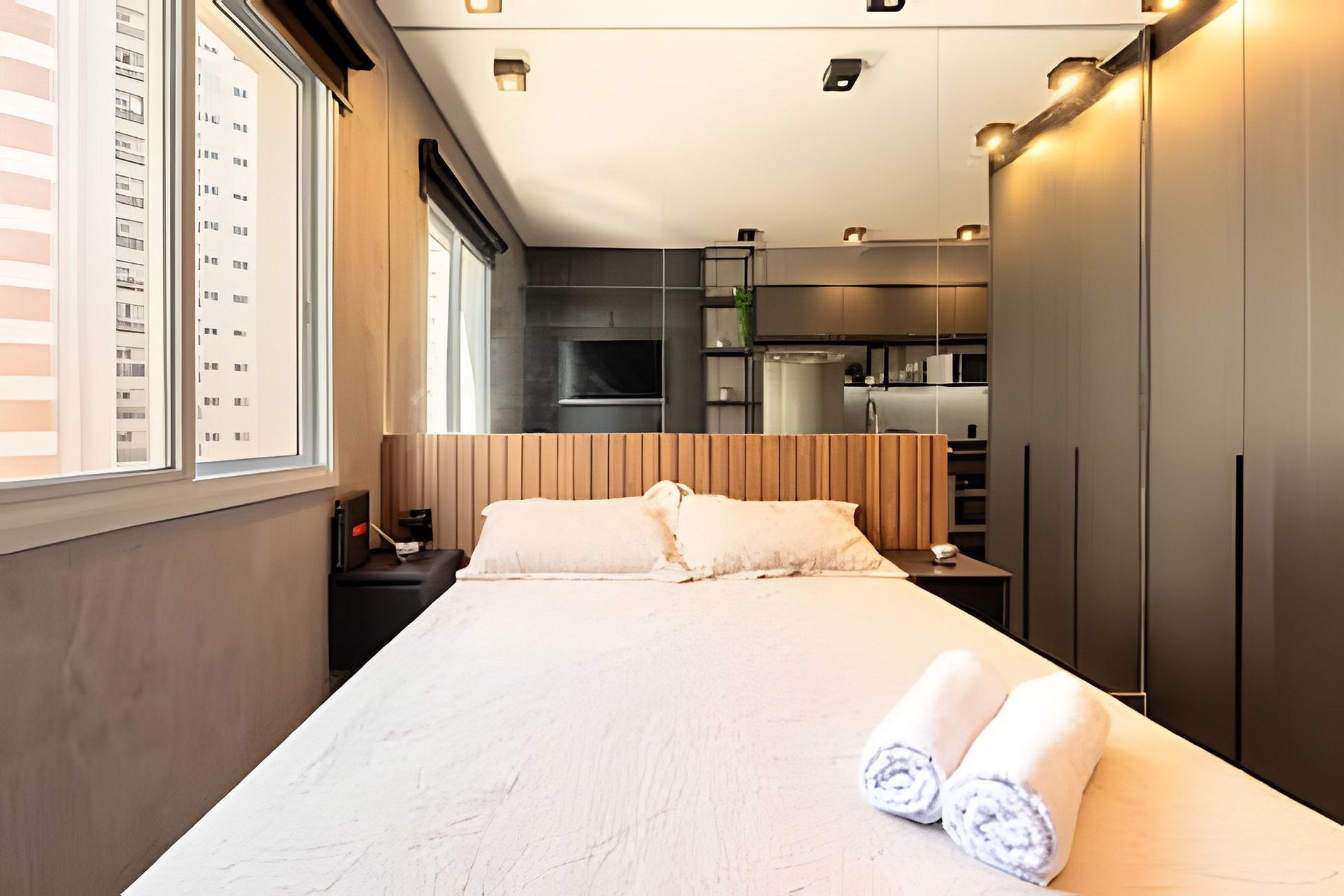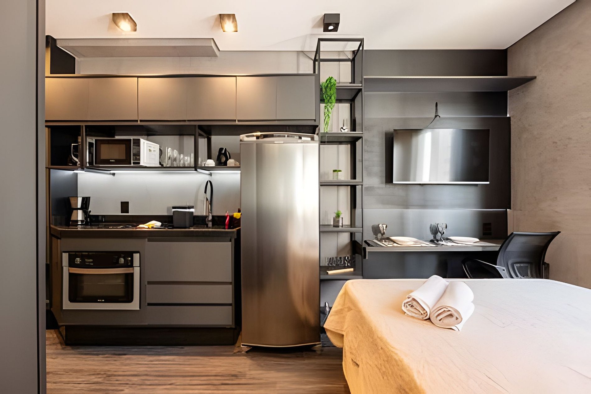 O estúdio é totalmente independente, garantindo privacidade sem compartilhamento de espaço ou internet com outras unidades. Além disso, oferece acesso exclusivo à academia localizada no andar térreo do condomínio.