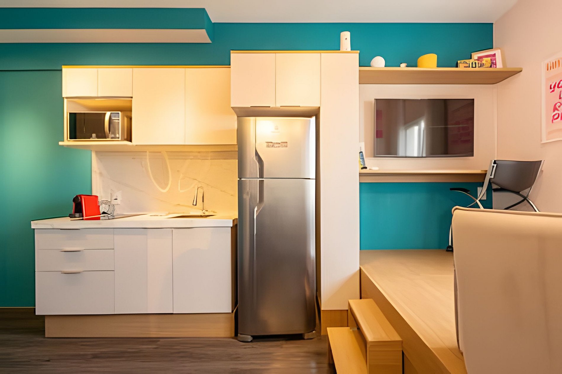 Estúdio estilo suíte, moderno e funcional, perfeito para quem busca conforto e praticidade. O espaço conta com closet, cabideiros, geladeira e diversas outras comodidades que garantem uma estadia agradável e eficiente. Ideal para estadias curtas ou longas, o ambiente foi pensado para oferecer bem-estar e organização no dia a dia.