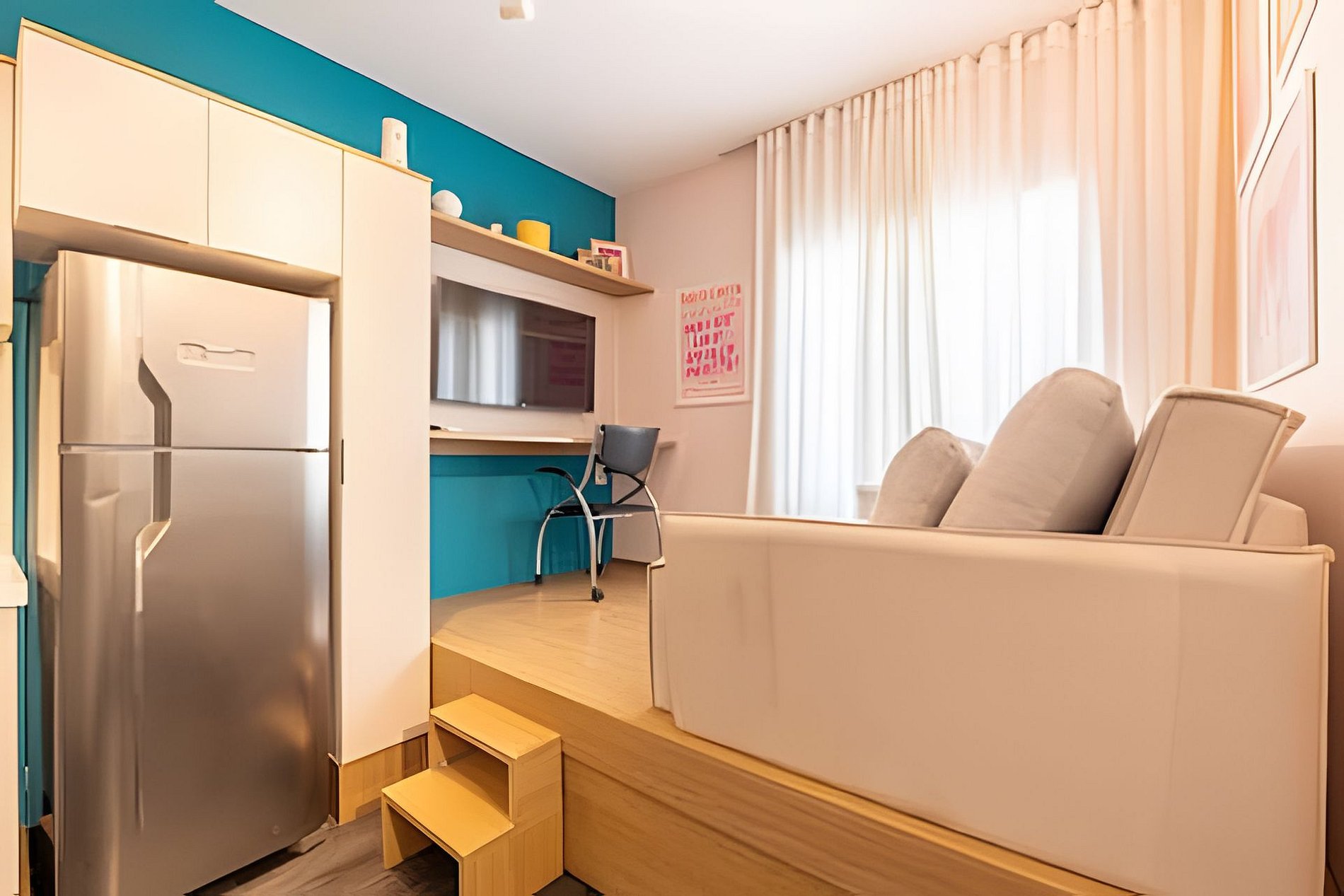 Seja bem-vindo(a) ao seu novo espaço funcional e moderno no Neo Home Studios São Caetano! Este estúdio compacto e inteligente foi planejado para proporcionar praticidade e conforto em cada detalhe. O espaço conta com: Internet Wi-Fi de alta velocidade, ideal para home office ou streaming; Geladeira nova e prática para armazenar bebidas e alimentos; Cama confortável e espaço bem iluminado, com ambiente versátil para descanso ou trabalho; Banheiro privativo com ducha quente e itens essenciais.